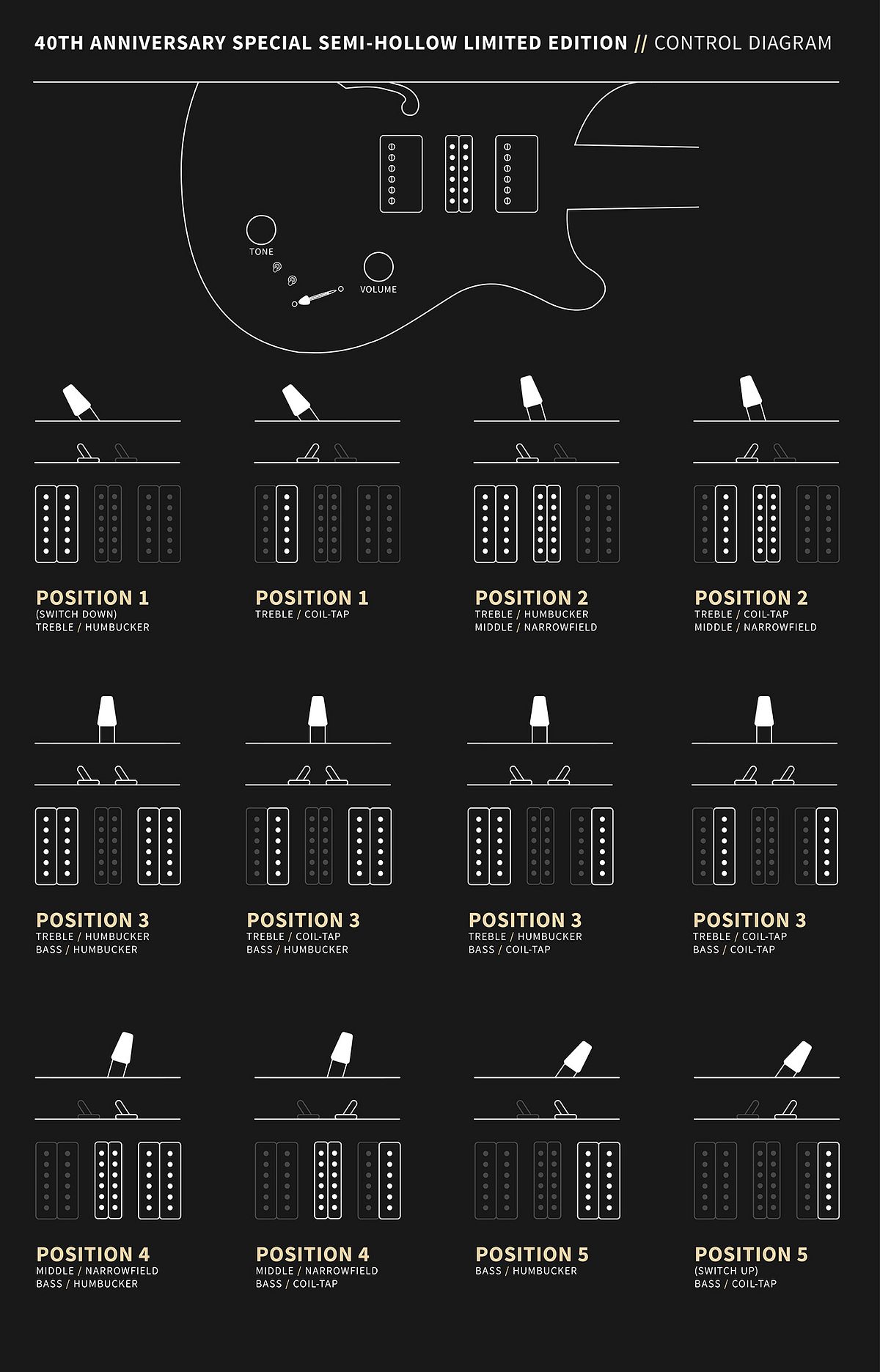 Myriad sounds and styles with twelve total pickup configurations.