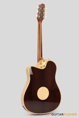 Another benefit of the rock-solid neck support is that more string energy is transferred to the top, expanding dynamic range, enriching tonal depth, and enhancing low-frequency response. This contributes to the depth, warmth, and rich acoustic sound that was previously unattainable from an Acoustic-Electric guitar.